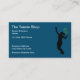Unik, modern affärskortmall för tennis-teman designad med en tennisspelare i coolan för att tjänstgöra i åtgärdsposition och enkel layout som du kan anpassa onlinen. Skapat för tennis Pro, instruktör, klass eller klubb.
