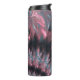 Eterkonst med abstrakt blommor placerad i symmetriska rader i form av en fraktalform. Blommorna är färgad/färgad i ljusskuggor som rosa och blått med en aning ljus, medan mörken färg i bakgrunden gör en stark kontrast till blommorna. Hela sammansättningen ser bra ut, originell och grumlig ut.