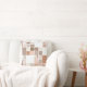 En modern designkudde med ett mosaiskt mönster i varm terrakotta, tan, kaffe och chokladpastel färg.