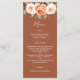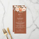 Den här boho terracotta-menyn för bröllopsmottagning är perfekt för en bohemisk stil bröllop. Den här menyn innehåller blommigtar med vattenfärger i färg-schemat som bränt orange, terracotta och rosa med sage grey mot en terracotta-bakgrund. Denna trendande palett i färg är perfekt för en sen sommar eller höst i bröllop. Gör den här menyn till din egen genom att inkludera alla uppgifter på bröllopsmenyn. Om du vill ha mer anpassning klickar du på länken "anpassa ytterligare" och användor verktyg som designen för att ändra mallen