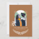 Celebrate your graduate in style with this modern terracotta graduation party invitation featuring a personalized photo layout and elegant arch frame design. The warm earthy background combined with minimalist white typography creates a trendy yet timeless look.