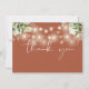 Med delikat blommigt grey, söt string ljus och ett elegant-tack-skript på en terracotta-bakgrund. Du kan anpassa ditt eget tack till meddelandet på motsatt sida, eller ta bort texten om du föredrar att lägga till ditt handskrivna meddelande. Ett perfekt sätt att säga tack! Designad av Thisisnotme©
