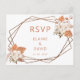 Det här rituella vykortet Rustic Terracotta Boho Pampas Geometric Bröllop OSA levereras med Terracotta Geometric Ram med Pampas Grass White Orchids och Cotton Bunch på båda hörnen med en stiliserad Designad baksida
