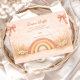 A warm and modern boho baby shower design featuring a soft neutral rainbow in earthy terracotta, sage, peach, and sand tones. Delicate dried florals and subtle textured details create an organic, minimalist look that feels both cozy and refined. Perfect for celebrating a mama-to-be who loves natural palettes, modern bohemian styling, and timeless simplicity.