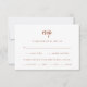 Dessa elegant, minimalistiska bröllop-responskort har terracotta-manustypografi och sans serif-text på vit bakgrund, för en enkel och boho-design som du kommer att använda kärlek. Det finns utrymme att lägga till dina gästalternativ för val av måltid eller val av måltid.