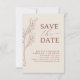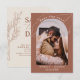 Terracotta Spara datumkortet. Bränd Orange bröllop spara datum. Den här contemporary-kortmallen som du kan anpassa för perfekten. Modern med personligens fotobåge. Boho inbjudan visar tropiska blommor, monstera löv, fotobåge. Modern och enkel inbjudan designad digitalt.