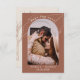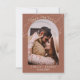 Terracotta Spara datumkortet. Bränd Orange bröllop spara datum. Den här contemporary-kortmallen som du kan anpassa för perfekten. Modern med personligens fotobåge. Boho inbjudan visar tropiska blommor, monstera löv, fotobåge. Modern och enkel inbjudan designad digitalt.