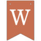 En enkel banderoll flaggor för ett terracotta bröllop, med namnen av bruden och trippen, med vita lock på terra cotta brun bakgrund.