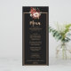 En finare faller hösten, moody terracotta brände ner orange blommigt bröllop middagsmeny. Vilket har bränd orange och elfenbensbeige krämblommor som persikor och höst löv.