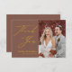 Terracotta Elegant Guld Script Modern Photo Bröllop tackade ditt kort. Visa hur tacksam du är för dina vänner och din familj som gjorde bröllop till extra speciell med detta vackra fototackkort från bröllop. Alla texterna är i förväg ordnade så att du enkelt och snabbt kan anpassa dig till din egen ord.