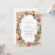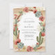 This design features a warm earthy palette of terracotta, sage green, and sandy beige. Hand-painted watercolor saguaro cacti and prickly pears are paired with soft roses, echeveria succulents, and airy pampas grass. It captures a bohemian desert atmosphere perfect for a romantic outdoor union. The artistic arrangement blends lush botanical details with rugged flora.