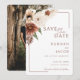 The back side showcases your favorite engagement photo, creating a meaningful and personal keepsake your guests will treasure. Customize with your names, wedding date, and location to create a beautifully coordinated announcement that pairs seamlessly with the matching wedding suite. This photo Save the Date is perfect for couples who love neutral florals, warm tones, and elegant, cohesive wedding stationery.