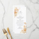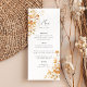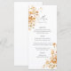 This Terracotta floral elegant wedding menu features soft watercolor botanicals layered over a warm burnt orange, creating a refined balance between romance and modern sophistication.