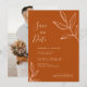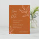 Bjud in dina vänner och nära och kära till en virtuell bröllopsfirande med denna eleganta och chic save the date-inbjudan med en jordtonad terrakottakolor palette med skissartad blad design. Anpassa den med dina egna bröllopsdetaljer och foto på baksidan.