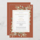 En elegant personlig firande av begravningsinbjudan till livets minne med botaniska vattenfärger grönt löv på en terracotta bakgrund. Designad av Thisisnotme©
