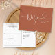 Ett elegant hjärtskript på en terracotta-OSA kort. Den omvända informationen innehåller din information och en förfrågan från roligt gäst sång. Designad av Thisisnotme©