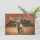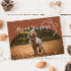 Hund för julfotomall med en rolig text som säger "merry woofmas". Lägg till hund på det här vita ram-kortet. Det finns en illustration av en båge. Terracotta färg design.