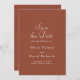 Vi presenterar vårt "Terracotta Minimalist Save the Date Card", ett utmärkande tillägg till vår samling som förenar modern enkelhet och en mysigt, som inbjuder terracotta färg-paletten. Det här kortet har en terracotta-bakgrund som är försedd med ett vitt skript och ett typsnitt för snyggt i elegant och anger en varm och contemporary för bröllop-meddelandet. "Terracotta Minimalist Save the Date Card" är designat för att tillkännage ditt kommande bröllop med stil och ära. Dess minimalistiska utformning ser till att ditt budskap går i centrum, medan terracotta-hues tillför en viss värme till den totala estetiska bilden. Välj det här Spara datumkortet till ge för dina nära och kära en smygrekik in i din speciella dag med inbjudan till terracotta-toner och elegant-skript. Skapa förväntan och upphetsning när du inbjudningarna dem att märka sina kalendrar och gå med dig på resan mot ett vackert firande. Med det här vackert designade kortet kan du ställa in scenen för en minnesvärd händelse.