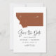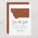Meddela din bröllop-dejt till familj och vänner med detta Montana-statliga tema spara datum meddelande. Den illustrerar Montanas karta, enkel typografi och handskript. Anpassa genom att lägga till namn, datum, plats och annan information. Det här terracotta-tillståndet Montana sparar datumkortet är perfekt för alla bröllop-teman.