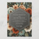 This design features a rich palette of terracotta, charcoal, and sage green, creating a sophisticated and moody atmosphere. Illustrative botanical elements include vibrant dahlias, desert succulents, and delicate filler blossoms that create a lush, layered look. Perfect for an autumnal or desert-inspired event, the artwork evokes a vintage aesthetic with its deep tones and intricate floral details.
