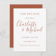 Terracotta Namnteckning skript Bröllop spara datum Vykort