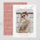 Trendigets studenten-meddelande med student-fotot med en vit grov kant gräns. "Student" visas i ett terracotta-skript som namnteckning med student, namn, namn och studenten enligt nedan. Det moderna studenten-meddelandet går tillbaka till visningen med en unik och vit stampad terracotta mönster. Det här fotoannonskortet från studenten är perfekt för både högskoleexamen och högskoleexamen.