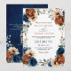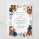 Terracotta Navy Blue Greenery Chic QR Code Wedding Inbjudningar