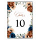 Elegant Navy Blue, Terracotta , Orange earthy blommigt Tema bröllop bordsnummer card med elegant bouquet of Navy blue, Terracotta färg ro peonies and grönt eucalyptus lövs. Kontakta mig om du behöver hjälp med anpassning eller om du behöver någon annan produkt med den här designen.