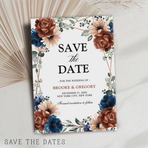 Terracotta Navy Blue Geometric Wedding ThemeDesignad av Bliss Design Studio