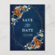 Elegant Navy Blue, Terracotta , Orange earthy blommigt Tema sparar postkort med elegant bouquet av marinblått, Terracotta färg ro peonies och grönt eucalyptus löv. Kontakta mig om du behöver hjälp med anpassning eller om du behöver någon annan produkt med den här designen.