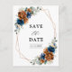 Terracotta Navy Blue Greenery Spara datumet Vykort