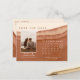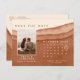 Mjuka terracotta-kort med vattenfärg bröllop spara datum med kalender, en del av vår dip-färgade moderna pappersinsamling i bröllop. Med skuggor av neutralt som återställs för att rosta till bränd orange, som påminner om lerdeserter, som används i målade linjer av rik som tvättar vattenfärg, och som matchar minimalistisk text.