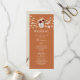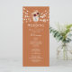 Följ dina gäster genom din speciella dag med vårt elegant, moderna boho-bröllopsprogram. Med en botaniskt inspirerad utformning i rustik terracotta bränd orange, försedd med ett personlig monogram och exquisite burgundy vattencolor blommor in mason burk. Upplyst av den mjuka glöden av strängen ljus och avslutat med trendigets kalligrafiskript, är det perfektens blandning av naturlig charm och contemporary stil.