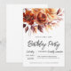 Elegant terracotta orange vattenfärgsblommor skapar en fet blommigt arrangemang överst på denna födelsedagsinbjudan. Ett vanligt skript ge är en modern vibe.