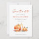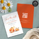 Terracotta Orange Pumpkins Candle QR Code Bröllop. Ett skript som anger eleganten för Spara datum och resten av texten som du enkelt kan anpassa med dina uppgifter. Lägg till QR-koden på webbplatsen bröllop på baksidan eller ta bort den och texten på baksidan om det inte behövs.