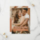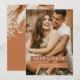 Eleganta boho bröllop spara datum-kort med ett foto av bruden & brudgummen, monokroma jordtonade lådor med en redigerbar textmall. På baksidan finns en terracotta-bakgrund med akvarell öken torkade palmblad, och trendig pampas gräs.
