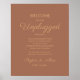 Terracotta/rost/bränd orange "Unplugged bröllop" med rost/guld i ett typsnitt av eleganten. Det här tecknet kräver bara att dina gäster lägger bort sin telefoner och kameror under ceremonin så att dina fotografer kan få perfektens foton av bruden, brudgummen och gästerna. Undertecknad av brudgummen och brudgummen och personligen med deras bröllop-datum. Perfekt för höst- eller vinterbröllop. Bakgrunden till detta tecken är anpassade, så skapa ditt eget för att matcha ditt bröllop färger.