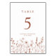 Terracotta Rustic Blommigt Fall Wildblomma Bröllop Bordsnummer