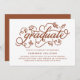Låt oss fira student! Inbjudan gäster till ditt evenemang med anpassadet fotoinbjudan till studenten. Den har rustik kalligrafi med blomnings- och bladaccenter. Anpassa den genom att lägga till information. Denna inbjudan till terracotta studenten finns även i andra kartonger och färg.