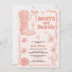 Fira i stil med vår hand plockade "Boots and Bubly" inbjudningskort för möhippan, perfekt för en roligt- och chic-utsändning av land. Den här lekande designen innehåller handritade illustrationer av en snyggt cowboybock, ett champagneglas och inslag av vismisk blommigt, allt i redigerbart vibrerande terracotta och mjuk persika. Med avslappnaden och det framstående teckensnittet får du en aning charm och anger perfektens ton för ett glatt och minnesvärt firande. Inbjudan är helt redigerbar, vilket gör att du kan anpassa texten och färg för att matcha ditt unika tema för möhippa. Vare sig du är värd för en bakgårdsplats eller en rustik vinodling i party, ser den här inbjudan till dina gäster att bli upphetsade för festligheterna.