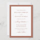 Terracotta-skript Bröllopsinbjudan. Gör din bröllopsinbjudan så minnesvärd som din speciella dag med den här chicen och snyggten. Den här moderna textinbjudan har ett enkelt minimalistiskt utseende med en klassisk traditionell beröring och innehåller ett handskrivet kalligrafiskt skript med klassisk terracotta/bränd orange gräns ram. Hitta samordningsprodukter i den enkla Eleganten Terracotta Gräns Bröllop Suite.