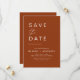 Bröllop Boho Terracotta Spara datum-kort Spara datum-kortet innehåller en modern handskriven kursiv skrifttyp som är elegant, enkel och modern att använda efter din minimalistiska enkla bröllopsdagfirande.
