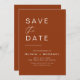 Bröllop Boho Terracotta Spara datum-kort Spara datum-korten innehåller en modern handskriven kursiv skrifttyp som är elegant, enkel och modern att använda efter din minimalistiska enkla bröllopsdagfirande.