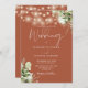 Terracotta String Ljus Blommigt QR Code Bröllop Inbjudningar