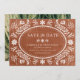 din kärlek-artikel med den här Terracotta Rustic Papel Picado Spara datumet med ditt favoritfoto. Den tidlösa utformningen av papel picado parad med varm terracotta färg skapar en vacker bakgrund för ditt meddelande. Perfekt för ett giftigt, mexikaninspirerat bröllop firande. Matchande objekt i vår butik Cava Party-design.