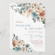 Terracotta Teal Neutralt Watercolor blommigt bröll Inbjudningar