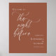 Ställ in scenen för en minnesvärd repetitionsmiddag med vår Elegant minimalist Terracotta 'The Natt before' Välkomstskylt. Den här poster har en elegant och modern design och ger en något sofistikerad upplevelse till att din evenemangsdekanter blir mer avancerad. Perfekt för att välkomna gästerna och ange tonen för kvällen framöver är det säkert att denna poster kommer att göra en snyggt påstående. Öka din repetitionsmiddag med vår Elegant Minimalist Terracotta Välkomstskylt "Nattinnan" och få dina gäster att känna höger hemma.