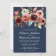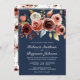 Terracotta Watercolor Blommigt Navy QR Code Bröllo Inbjudningar