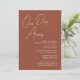 Terracotta Whimsical Script-Chic Inbjudningskort för en dag. Fira din speciella dag med den här eleganten och ett vackert bröllopskort för att passa ditt speciella tillfälle. Alla texterna är i förväg ordnade så att du enkelt och snabbt kan anpassa dig med dina egna detaljer.