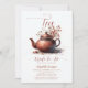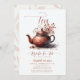 En vacker och chic teracotta blommigt-te-inbjudningsmall med ett tema för vilda blommor, med vattenfärgade vilda blommor i terracotta-nyanser, parad med kalligrafi för elegant, samt en modern keramisk tekruka med några sprit av torkade växter och vild blommor. En modern, elegant inbjudan som kommer att fira en blivande brud med elegans och stil. Perfekt för brider som kärlek den brända orangen, terracotta-estetik, vintage, vilda blommor, torkade blommor och kalligrafi.